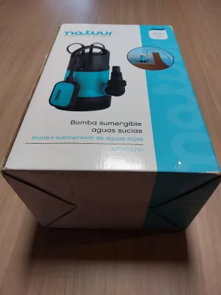 Bomba sumergible de la marca Natur para aguas sucias. Potencia nominal 400W. Caudal máximo de descarga: 8000 litros/hora. 8m3/hora.Presión máxima: 5 metros.Profundidad de inmersion máxima: 5 metros.Nivel de achique: 30 mmDiámetro máximo de particulas al aspirar aguas sucias: 35 mm.Peso: 4,5 kilostemperatura máxima de utilización 35ºCAlimentación: 230V. 50Hz.