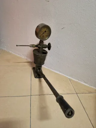Antiguos manómetros con bomba manual. Ideal para coleccionistas o como pieza decorativa. - Cuerpo metálico. - Dial con escala. - Palanca de bombeo.