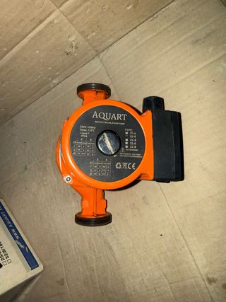 Bomba de circulación de agua de la marca Aquart. Ideal para sistemas de calefacción y agua caliente. - Tensión: 220 V-50 Hz. - Temperatura máxima: 110 °C. - Clase F. - Protección IP44. - Tipo: 25-4, 25-6, 25-8, 32-6, 32-8.