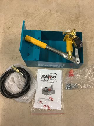 Bomba de presión manual de la marca Katsu, diseñada para tuberías. KATSU Bomba de Prueba de Presión de Tubería Manual, Hidráulico 5L 0-50Bar Medidor de Fugas para Inspección de Instalación de Sistemas de Tuberías de Agua Fría y Caliente 318927 - Base de color azul. - Manómetro incluido. - Manguera de conexión negra. contiene manguera soprte , manometro , filtro , tornillos para su montaje mas manual