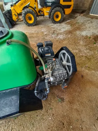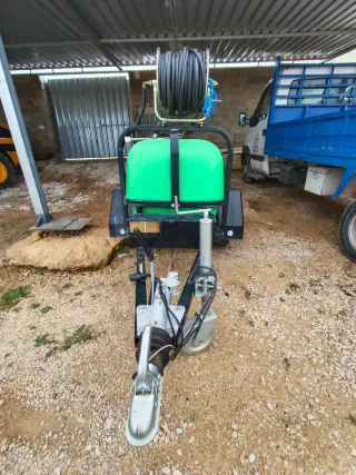 Cuba de sulfatar arrastrada con 50 bar reales, bomba Ludor de alto rendimiento, motor kohler y enrollador de manguera. -Motor kohler de 16cv -Bomba Ludor de pistones de 50bar - Depósito de 600L capacidad. - Enrollador de manguera de 50m. -Lanza de alto alcance. - Remolque robusto con freno. -Ruedas nuevas
