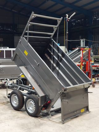 Remolque basculante hidráulico industrial electrosoldado. Provisto con freno de Inercia y estacionamiento. Carro reforzado, nuevo a estreno. Basculante Hidráulico FR industrial, con bomba hidráulica manual. Un eje altamente REFORZADO, para el aguante de grandes cargas. Medidas de caja 2000 x 1280 x 700 . (Largo, ancho y altura). Puerta trasera tipo portón abatible, en rampa y desmontable. LANZA DOBLE reforzada, rueda jockey giratoria. Ruedas 185X14 C de carga + repuesto. Envíos en camión a península. 6--0.-2.-5.-.9-.6--1.-.2.-9 Fabricación a medida !!