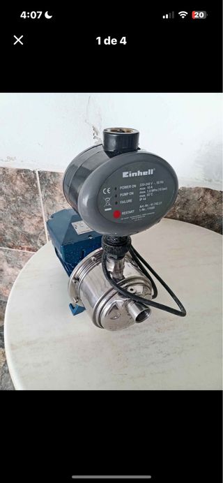Bomba de agua de la marca Einhell, ideal para diversas aplicaciones. - Modelo: 40.242.21 - Voltaje: 220-240 V ~ 50 Hz - Potencia: 10.5 A - Presión máxima: 1.2 MPa (12 bar) - Temperatura máxima: 35 °C - Protección IP 44