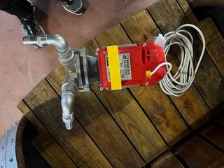 Bomba sin estrenar en su caja. Bomba de trasiego alimentaria Rover Pompe, ideal para cerveza y vino. - Motor eléctrico de alta eficiencia. - Cuerpo de la bomba de acero inoxidable. - Conexiones para mangueras de fácil acople. Auto Cevante, aguanta temperaturas de hasta 95 °C Es una maravilla tiene un buen caudal y absorbe líquidos con pequeñas impurezas sin problema, es reversible, absorbe tanto por la entrada como por la salida, tú seleccionas el sentido de absorción… la vendo porque tengo dos y esta la tenía de repuesto por si la otra me daba algún problema. Durante alguna elaboración de cerveza, nunca he tenido ningún problem