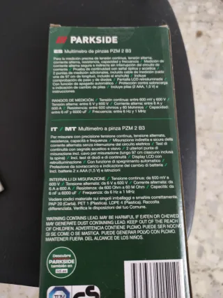 Multímetro de pinzas de la marca Parkside. - Para medir tensión continua y alterna. - Mide corriente continua y alterna. - Mide resistencia. - Incluye pilas. - 3 años de garantía.