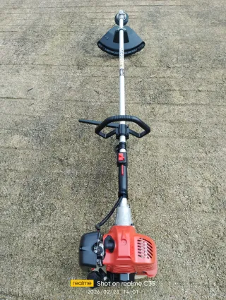Desbrozadora con motor de gasolina, ideal para el mantenimiento de jardines y terrenos. Lo de las fotos. - Color rojo y negro. - Mango ergonómico para un mejor agarre.