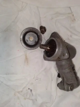 Cabezal para desbrozadora Husqvarna modelo 245 R. Pieza metálica con tornillos de sujeción. No tiene desgaste en el engranage. Tiene una fisura pero lleva una abrazadera d sujecion( ultima foto) No afecta a su funcionamiento. - Material: Metal. - Color: Gris.