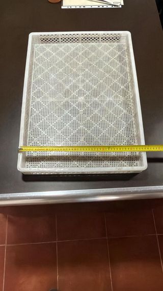 Bandejas de plástico resistente, ideal para uso alimentario. - Material apto para alimentos. - Diseño perforado para ventilación. Nunca se han utilizado Hay 440 Unidades iguales Precio 4,5€/Unidad