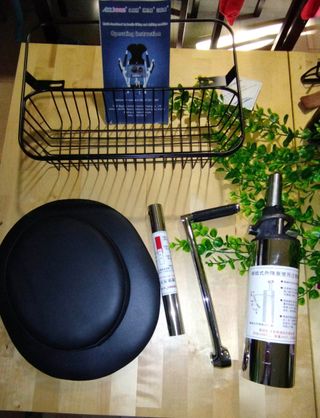 Bomba hidráulica de repuesto para sillas de movilidad reducida. Pieza de metal cromado con detalles en negro. - Cilindro de elevación. - Palanca de accionamiento. -Cojin - Cestillo para una máquina multifuncional hidráulica de elevación y traslado. Este dispositivo de cuidado de pacientes está diseñado para ayudar a trasladar a personas mayores o discapacitadas que tienen movilidad limitada, por ejemplo, entre la cama y una silla de ruedas, o para usar el baño y la ducha.