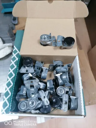 Lote de reguladores de costados para puertas. Piezas metálicas con base negra. - Material: Metal y plástico. - Color: Plateado y negro. - Cantidad: 20 unidades.