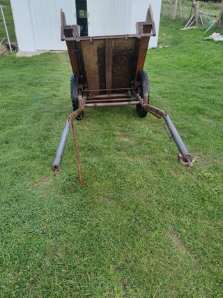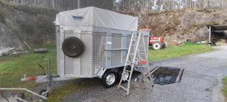Remolque para caballos con placa roja, fabricado en 2019. - Estructura metálica. - Cubierta de lona gris. - Rueda de repuesto.