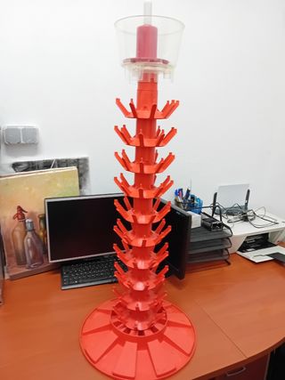 Práctica columna para el secado y limpieza de botellas. - Color naranja. - Base ancha para mayor estabilidad. - Múltiples brazos para colgar botellas.