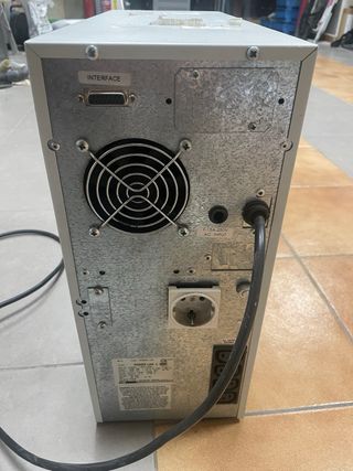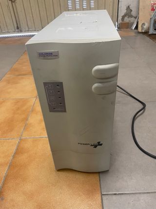 Sistema de protección de energía Chloride Power Lan +3000. - Etiqueta CHLORIDE POWER PROTECTION. - Panel de control con indicadores LED y botones. - Diseño vertical. - Marca POWER LAN visible en la parte inferior. - Vendo como si fuera para piezas o reparar, retirado de unas oficinas en uso. - Desconozco estado y funcionamiento. No se como va. Al enchufar lo a la corriente no hace nada.