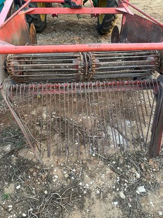 Arrancadora de patatas para tractor. - Estructura metálica robusta. - Cadenas de transporte. - Ruedas de apoyo. - En bastante buen estado