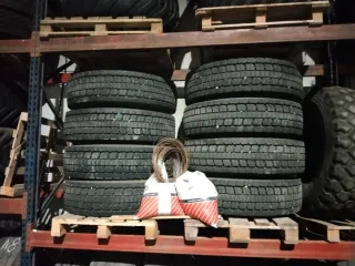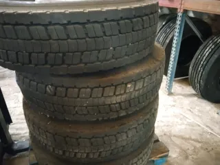 Juego de neumáticos para camión, medida 315/80 R22.5. También con discos y llantas 250 e. la unidad, solo 20.000 km está 90 %. Tambien tengo 385/65R22,5. Pero están 50%. - Diseñados para uso en carretera. - Y para camión.