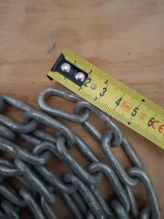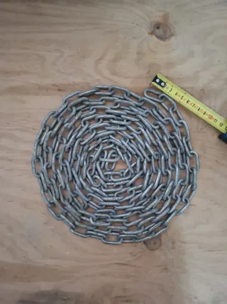 Cadena de eslabones galvanizados con una longitud de 3.5 metros. - Medidas del eslabón: 3.5 x 1.5 cm. - Peso 2 kg aproximadamente