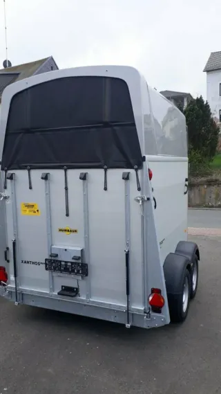 Remolque para caballos de la marca Humbaur. - Diseño robusto y funcional. - Ventana de ventilación en la parte superior. - Puerta de acceso lateral.