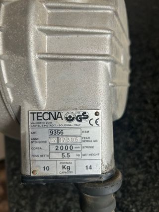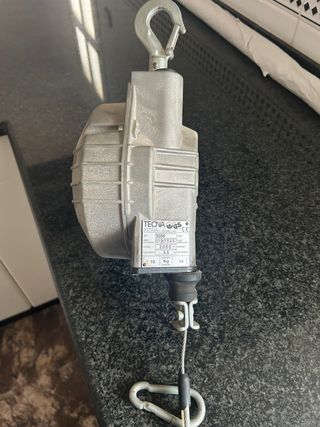 Equilibrador de herramientas Tecna modelo 9356. - Capacidad de carga: 10 Kg. - Carrera: 2000 mm. - Peso neto: 5.5 Kg. - Carga máxima: 14 Kg.