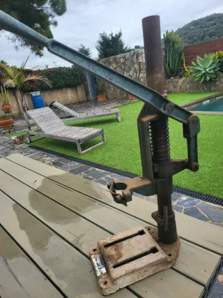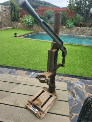 Se vende taladro de columna antiguo, ideal para coleccionistas o para proyectos de restauración. - Base de hierro fundido. - Soporte para taladro. - Palanca de accionamiento.
