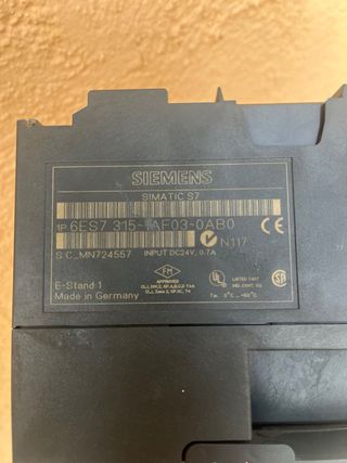 PLC Siemens SIMATIC S7-300 CPU 315. (6ES7 315-1AF03-0AB0) ✔️ Modelo 6ES7 315-1AF03-0AB0 ✔️ CPU industrial para automatización ✔️ Incluye tarjeta de memoria MMC ✔️ Fabricación alemana ✔️ Ideal como repuesto para instalaciones S7-300 ✔️ Material profesional de alta fiabilidad Se vende por no usar.