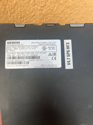 Variador de frecuencia Siemens SINAMICS V20 en muy buen estado. 0,75 kW (1 HP) Alimentación 200–240V monofásica Ideal para control de velocidad de motores eléctricos Usado en automatización industrial, talleres, bombas, ventilación, etc. Equipo probado (tested) Material de calidad profesional. Se vende por no usar.