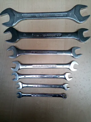 Conjunto de llaves Facom. - Llave fijas planas 6-7,8-9,10-11,12-13,13-17,18-19. mixta 5 - Llaves de tubo 10-11,12-13,14-15. Llave estrella plana 20-22.