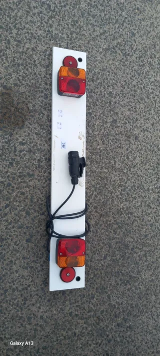 Barra de luces para remolque con dos luces de señalización y un conector. - Luces de señalización naranjas y rojas. - Conector de 7 pines.