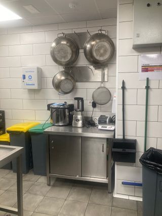 Se vende cocina profesional completa de restaurante, todo en acero inoxidable (casi 20 m). Electrodomésticos para revisar y puesta en marcha. Incluye: 2 hornos industriales 4 fregaderos inox Mesas de trabajo con cámaras de frío Parrilla profesional Campana extractora grande Frigorífico industrial Lavavajillas hostelería Fogones industriales Plancha profesional Muebles y estanterías inox a medida