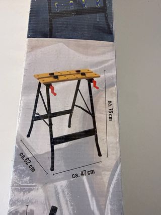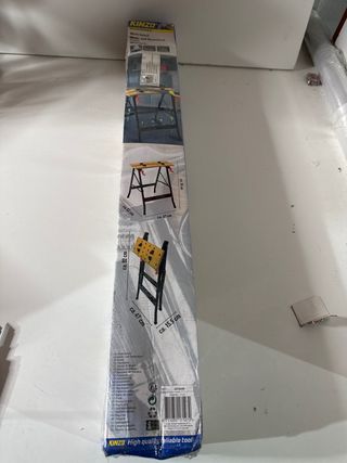 Mesa de trabajo plegable de la marca Kinzo, ideal para tareas de bricolaje y reparaciones. - Dimensiones aproximadas: 92 cm (alto) x 47 cm (ancho) x 15.5 cm (profundidad). - Diseño robusto y funcional.
