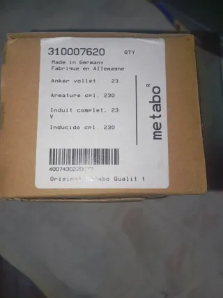 Rotor inducido para radial-desbarbadora Metabo. Tel. 639267901 - Número de pieza: 310007620 - Fabricado en Alemania - Voltaje: 230 V