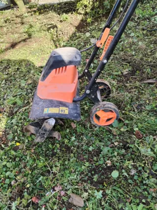Motocultor eléctrico TACKLIFE para trabajar la tierra. - Color naranja y negro. - Diseño compacto y manejable. Motoazada o fresadora eléctrica para jardines y huerta pequeña. Va muy bien. Tiene adaptada una reductora mucho mejor que las chinas. Es una máquina muy resistente.