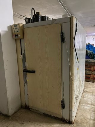 Cámara frigorífica de gran tamaño, ideal para uso industrial o comercial. - Puerta con cierre de seguridad. - Panel de control externo.
