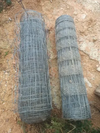 Se venden dos rollos de malla ganadera. De 1 metro de altura 1 sólo 20€ 1 rollo pesa 28 kg El otro 36 kg,tiene un alambre mas - Malla metálica para cercados. - Ideal para delimitar fincas o proteger ganado.