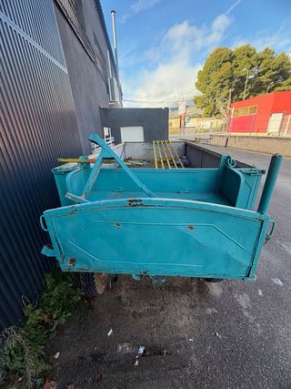 Remolque agrícola de color rojo, ideal para tractores. - Estructura metálica robusta. - Puerta trasera abatible. - Enganche para tractor. - Toda la documentación en regla.