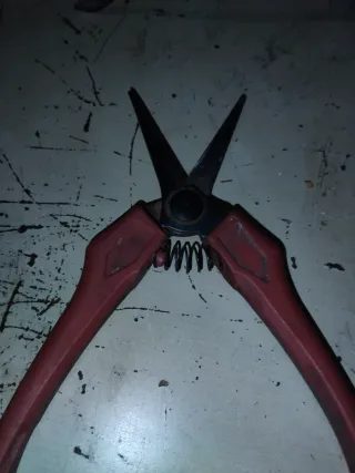Tijeras de podar con mangos rojos. - Cuchillas de metal. - Mangos ergonómicos de plástico rojo.