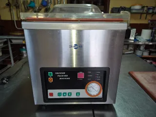 Envasadora al vacío profesional de la marca IRIMAR. Ideal para conservar alimentos en perfecto estado. - Panel de control con indicadores. - Manómetro para control de vacío. - Diseño robusto en acero inoxidable.