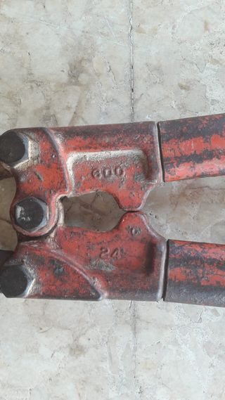 Cizalla cortapernos profesional de brazos extra largos (120 cm aprox.). Herramienta de alta capacidad industrial para corte de varillas corrugadas, barras de acero y pernos hasta 14-16 mm de diámetro. Excelente estado funcional con desgaste mínimo. Brazos tubulares que proporcionan máximo apalancamiento. Ideal para construcción, obras grandes, talleres de herrería y trabajos que requieran máxima potencia de corte. Cabezal de corte en buenas condiciones y brazos tubulares sin daños . Tiene algo de óxido superficial y pintura desgastada, pero nada que afecte su funcionalidad.