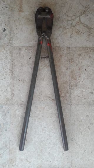 Cizalla cortapernos profesional de brazos largos (90-100 cm aprox.). Herramienta de alta capacidad para corte de varillas de acero, pernos y barras corrugadas hasta 10-12 mm de diámetro. Estado funcional correcto con desgaste normal de uso. Cuchillas de corte robustas y mangos de metal resistentes. Ideal para construcción, obras y trabajos de herrería que requieran mayor fuerza de corte.