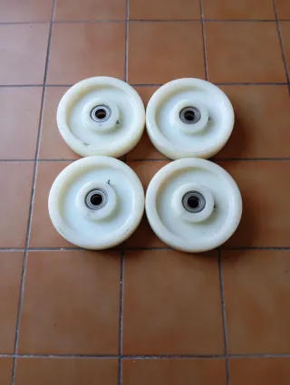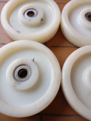 Set de ruedas giratorias para plataforma. Son ideales para mover muebles o cargas pesadas con facilidad. Estan nuevas a estrenar, las quite porque necesitaba una rueda de mas pulgadas 4 ruedas aguantan 500 kilos Fabricadas en nailon Muchas tienen freno - Fabricadas en metal y goma. - Incluye 12 unidades.