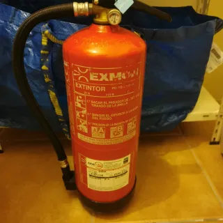 Extintor de polvo ABC de la marca EXMON. Placa y soporte incluidos - Carga de 21 A / 113 B. - Incluye instrucciones de uso en la etiqueta. - Indicador de presión.
