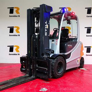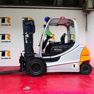 PRECIO SIN IVA Referencia 2155001 Marca STILL Capacidad de carga de 4.500 kg Altura de elevación 4.330 mm Batería de ácido-plomo de 80 V Con cargador 80 V / 140 AH Con mástil tríplex Con palancas y 4a Válvula Con luces y blue light trasero y perimetral Desplazador lateral Cabina sin puertas Ruedas superelásticas negras La máquina se entrega con cabina y calefacción Año 2007 Horas: 6.878 h Con garantía y entrega inmediata