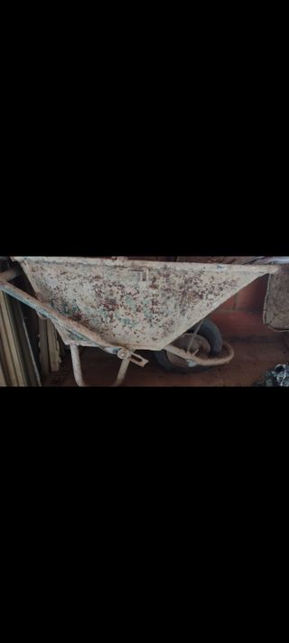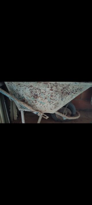 Carretilla de obra hormigon, carreton chino , ideal para trabajos de construcción o jardinería. Su diseño robusto la hace perfecta para transportar materiales pesados. Le falta la rueda. 35€ de hay su precio con rueda 50€ - Cubeta de metal. - Mangos con empuñaduras amarillas. - Estructura de metal resistente. Precio por acordar, la mejor oferta se la lleva.