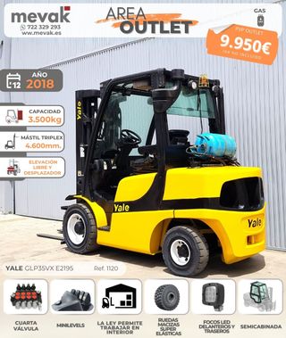 REF. 1120. Disponible CARRETILLA ELEVADORA GAS YALE GLP35VX E2195 con AÑO de FABRICACIÓN 2018. 📅 AÑO de FABRICACIÓN 2018 📦 CAPACIDAD de 3.500KG ✅ MÁSTIL TRIPLEX ELEVANDO 4.600mm. de ALTURA ✅ ELEVACIÓN LIBRE ✅ DESPLAZADOR ✅ CUARTA VÁLVULA 🕹️ MINILEVELS ✅ LA LEY TE PERMITE TRABAJAR EN INTERIOR ⬇️ BAJO CONSUMO 🛞 RUEDAS MACIZAS SUPER ELÁSTICAS 💡 FOCOS LED DELANTEROS y TRASEROS ✅ SEMICABINADA Mevak, una oportunidad para su negocio. 📲Contáctanos ya! 722 32 92 93 📍 Calle Lima, 6, Molina de Segura, Murcia