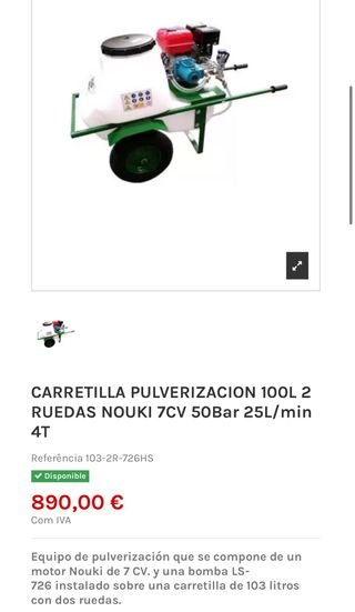 carretilla cuba fumigadora. de pulverizar nueva con motor de 4 tiempos gasolina. sola sin mezcla de aceite bomba de 2 pistones de 25/30bares 8/15 litros con 2 años de garantía somos fabricantes para más información puede llamar al 675980980 o agromur.es palabras visibilidad del anuncio motocultor, atomizador, desbrozadora, trituradora, motobomba de riego, tractor, mula mecanica, cortasetos, segadora de alfalfa, motosierra, cortacesped, corta hierbas, john deere, fendt, massey , ferguson, deutz, same , agria, ford, claas, lamborghini, generador, compresor, herramientas, equipo suspendido, bancada, desgranadora. mochila, vaporiz