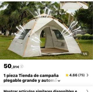 1 pieza Tienda de campaña plegable grande y automática de doble puerta y doble ventana, a prueba de lluvia y mosquitos, para reuniones familiares, picnics, camping, equipamiento al aire libre, casa al aire libre, de color blanco/gris nube, con aislamiento contra la humedad. Sin estrenar se monto solo en una ocasion para ver que estaba bien todo pero nunca se allegado a usar. Tamaño: 150x200x135cm