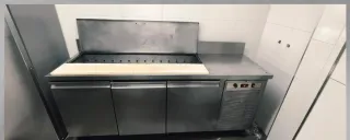 Mesa fría de acero inoxidable para hostelería con tres puertas. En perfecto estado