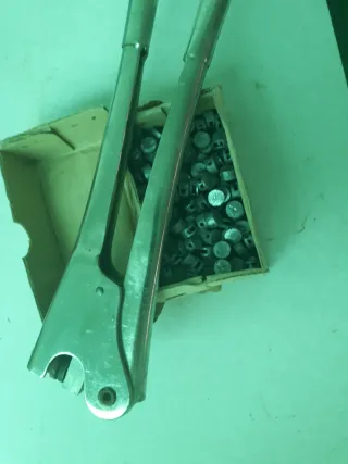 Herramienta para precintar plomos, ideal para asegurar cierres. - Incluye tenazas de metal. - Se acompaña de una caja con plomos para precintar.