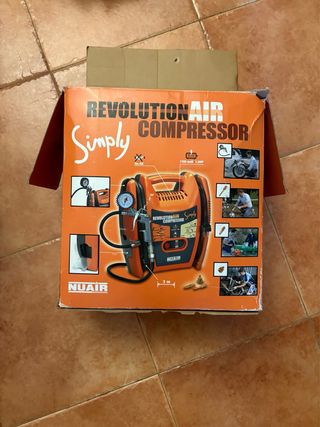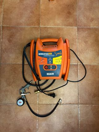 Compresor de aire NUAIR Revolution Air, ideal para diversas tareas. - Diseño compacto y portátil. - Incluye manómetro para control de presión. - Manguera. - Boquillas para inflado.
