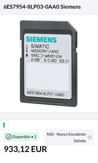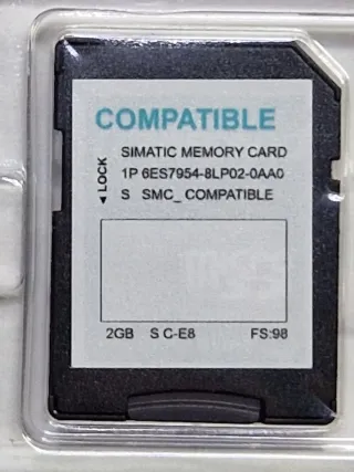 Tarjeta de memoria SIMATIC compatible. - Capacidad: 2GB - Modelo: 1P 6ES7954-8LP02-0AA0 - Código: S SMC_COMPATIBLE - Referencia: FS:98