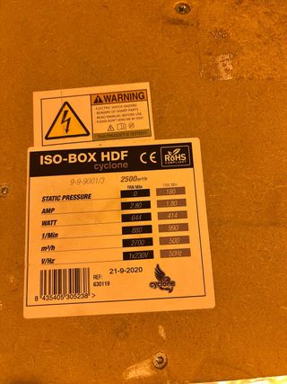 Extractor insonorizado marca ISO-BOX HDF, modelo Cyclone. Disponemos de 2 unidades - Capacidad de 1500 m³/h. - Presión estática. - No suena nada,